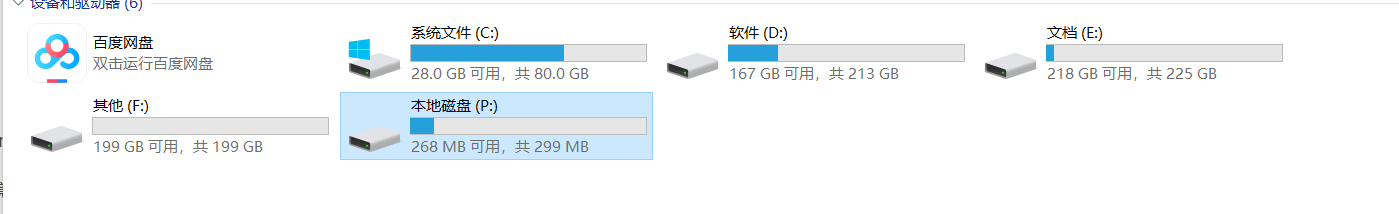 查看此电脑,磁盘多出了一个刚刚分配的P磁盘