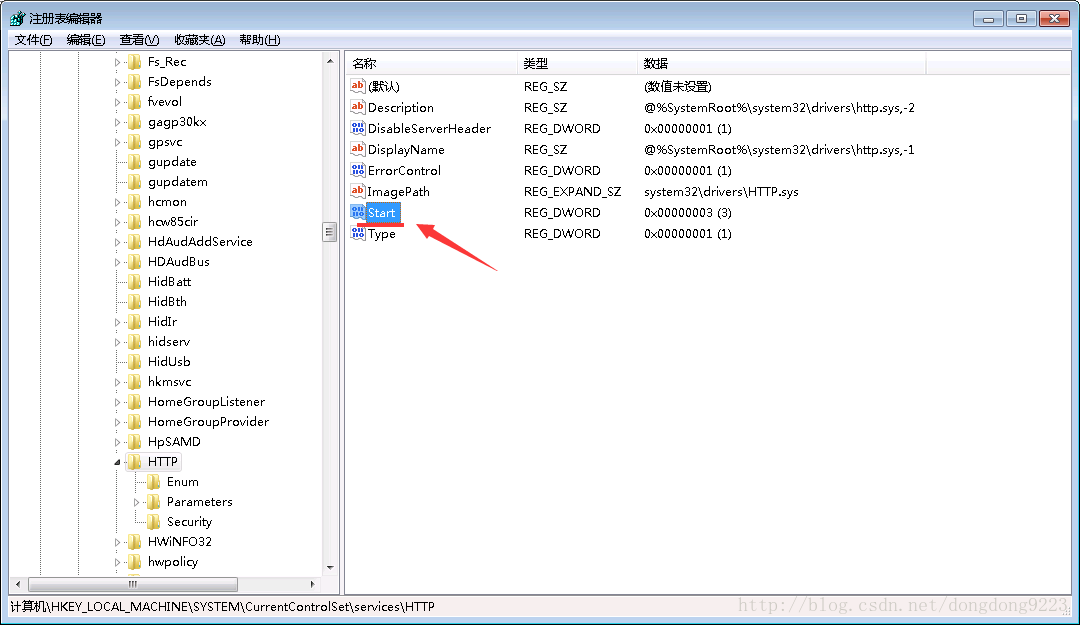 HKEY_LOCAL_MACHINE\SYSTEM\CurrentControlSet\services\HTTP