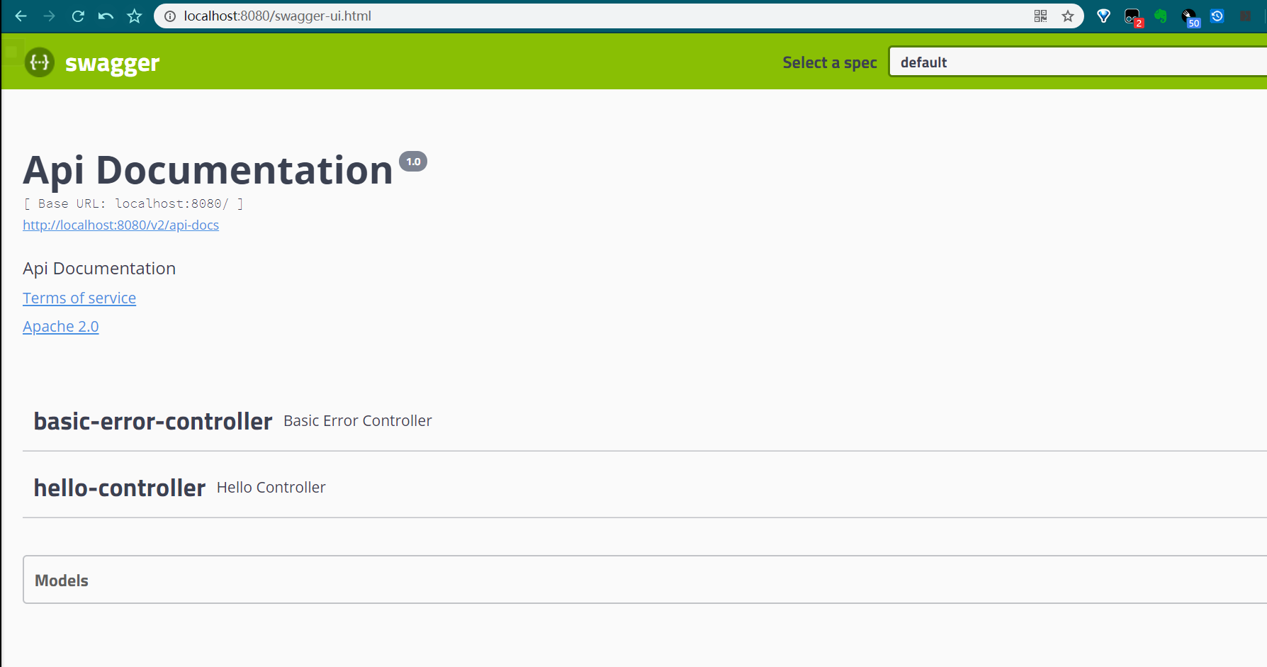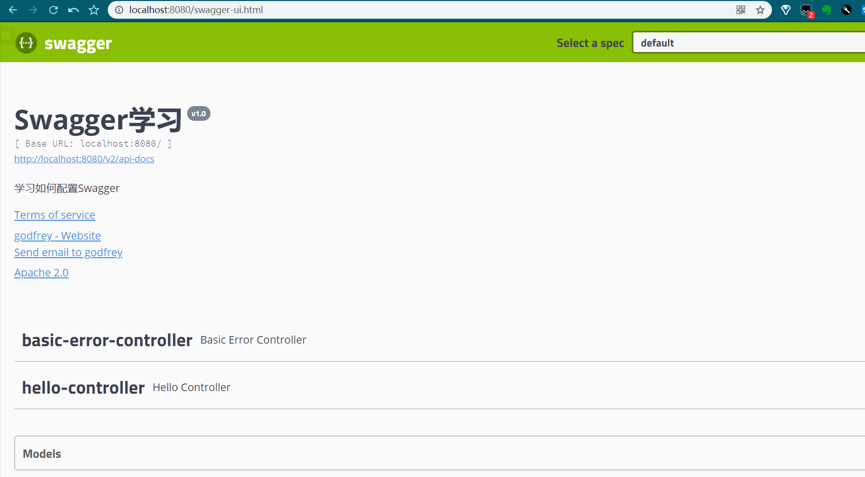 - 重启项目,访问测试 http://localhost:8080/swagger-ui.html 看下效果;