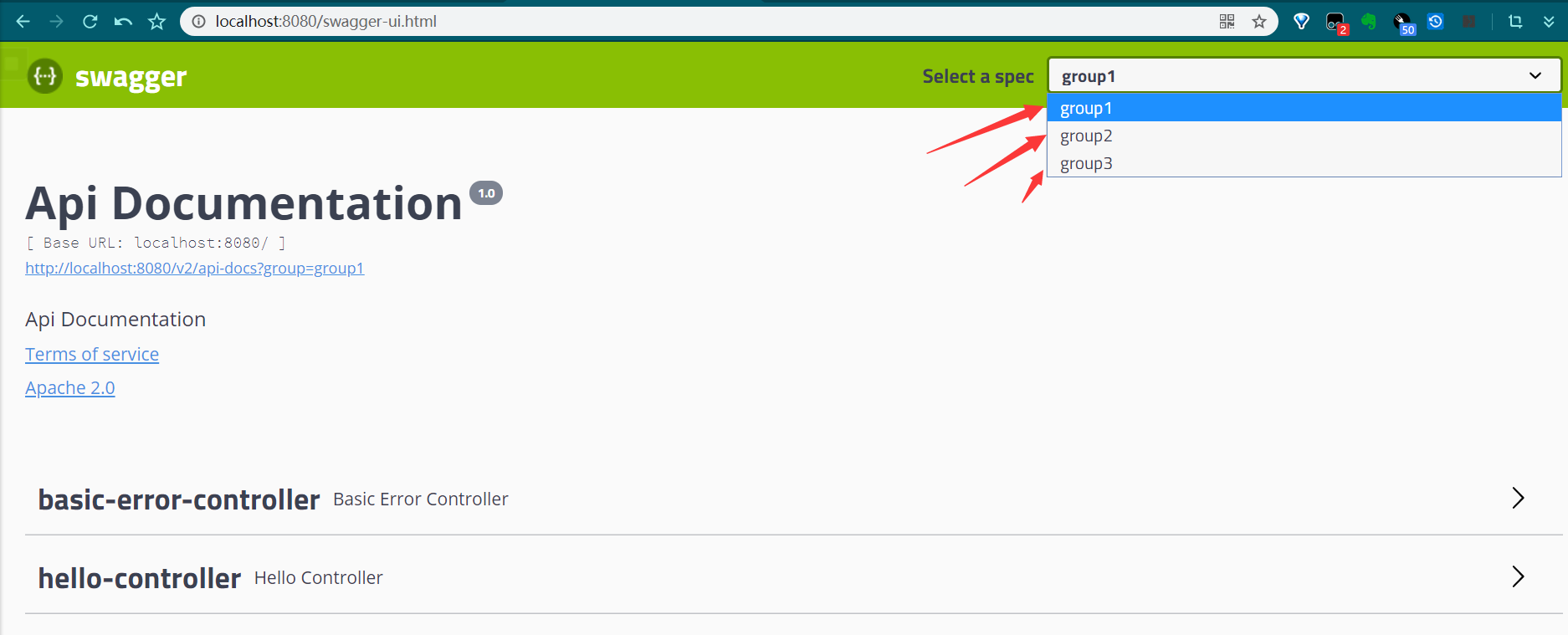 return new Docket(DocumentationType.SWAGGER_2).groupName("group1");