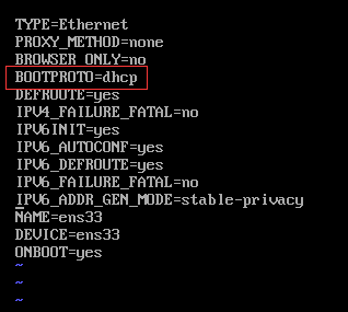 vi /etc/sysconfig/network-scripts/ifcfg-ens33 //进入网卡
