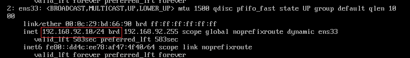 例:我上方设置的为192.168.92.10到192.168.92.100的地址池。获取到了192.168.92.1