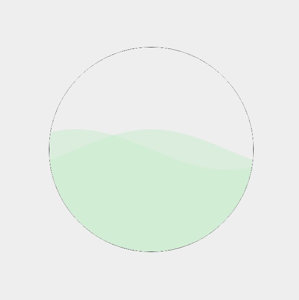 <!DOCTYPE html> <html lang="en"> <head> <meta charset="UTF-8" /> <meta http-equiv="X-UA-Compatible" content="IE=edge" /> <meta name="viewport" content="width=device-width, initial-scale=1.0" /> <title>Document</title> <style> * { margin: 0; padding: 0; box-sizing: border-box; } canvas { background-color: #eee; /* background-color: rgba(204, 119, 238, .5); */ } </style> </head> <body> <canvas width="600" height="600"></canvas> <script> const canvas = document.querySelector("canvas"); const width = canvas.width; const height = canvas.height; const ctx = canvas.getContext("2d"); const A = 40; // 正弦函数范围 -1 到 1, 扩大 120 倍 就是 -120 到 120 const offset = height / 2; const translateX = Math.PI / 10; const speed = 100; const time = 10; ctx.beginPath(); ctx.arc(300, 300, 202, 0, Math.PI * 2); ctx.strokeStyle = "#222"; ctx.lineWidth = 2; ctx.stroke(); function sinX(x, m) { return Number((A * Math.sin(x + m) + offset).toFixed(2)); } let start = 0; let start2 = 0; const addInc = 10; setInterval(() => { start += Math.PI / addInc; start2 += Math.PI / addInc / 2; ctx.clearRect(0, 0, width, height); ctx.save(); ctx.beginPath(); draw(start, "rgba(199, 237, 204, 0.5)"); ctx.beginPath(); draw(start2 + Math.PI, "rgba(204, 119, 238, .5);"); }, speed); function draw(tra, color) { ctx.fillStyle = color; ctx.moveTo(0, sinX(0, tra)); let lastPoint = [0, 300]; for (let i = 0; i < 2 * Math.PI; i += Math.PI / 50) { const inc = width / Math.PI / 2; const point = [Number((i * inc).toFixed(2)), sinX(i, tra)]; ctx.lineTo(...point); } ctx.moveTo(600, sinX(2 * Math.PI, tra)); ctx.lineTo(600, 600); ctx.lineTo(0, 600); ctx.lineTo(0, sinX(0, tra)); ctx.fill(); } ctx.arc(300, 300, 200, 0, Math.PI * 2); ctx.clip(); ctx.fill(); ctx.restore(); ctx.moveTo(0, 0); ctx.lineTo(600, 600); ctx.stroke(); </script> </body> </html>