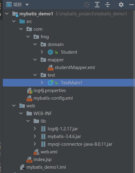 <?xml version="1.0" encoding="UTF-8" ?> <!DOCTYPE configuration PUBLIC "-//mybatis.org//DTD Config 3.0//EN" "http://mybatis.org/dtd/mybatis-3-config.dtd"> <configuration> <environments default="development"> <environment id="development"> <transactionManager type="JDBC"/> <dataSource type="POOLED"> <property name="driver" value="com.mysql.cj.jdbc.Driver"/> <property name="url" value="jdbc:mysql://localhost:3306/fmg?serverTimezone=UTC"/> <property name="username" value="root"/> <property name="password" value="24118028"/> </dataSource> </environment> </environments> <mappers> <mapper resource="com/fmg/mapper/studentMapper.xml"/> </mappers> </configuration>