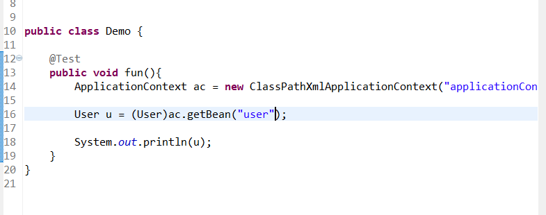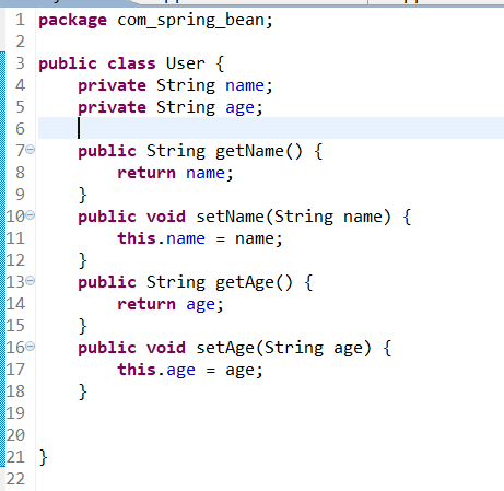 < bean name="user" class="com_spring_bean.User"></bean>