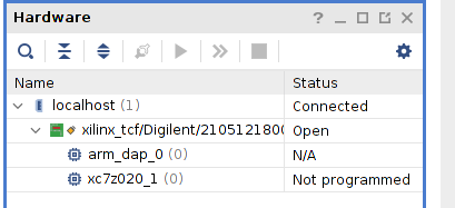 至此,应该所有的任务都完成了,打开vivado,Open HardWare Manager,进行一个Autoconnect,应该能成功找到设备,如图所示: