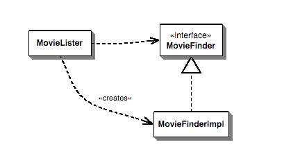 MovieLister类中直接实例化(new)一个MovieFinderImpl对象这样MovieFinderImpl对象不能称为为插件,它不再运行时插入应用程序。