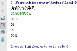s = input("请输入你的学号\n") 年级=(s[0:4]) print(年级) 专业=(s[4:6]) print(专业) 班级=(s[6:8]) print(班级) 序号=(s[8:]) print(序号) "\n" id=input("请输入身份证号码\n") age=2018-int(id[6:10]) print(age) if int (id[-2])%2 == 0: sex='girl' else: sex="boy" print(sex)