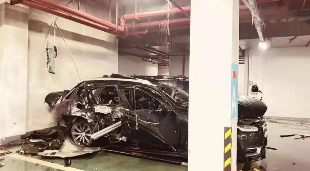 11月30日南京一辆沃尔沃新能源车疑似在地库充电爆炸 图源:扬子晚报