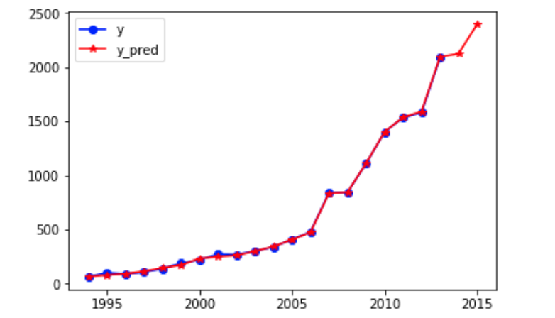 data[i][2014] = f(len(data)-1) #2014年预测结果
