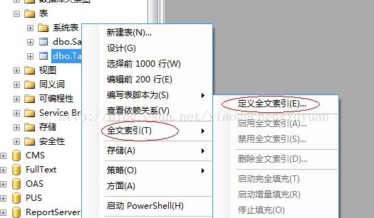 第二步:安装好后,开始设置全文索引,通过查询命令或者sql server Management Studio 实现,或者通过命令实现