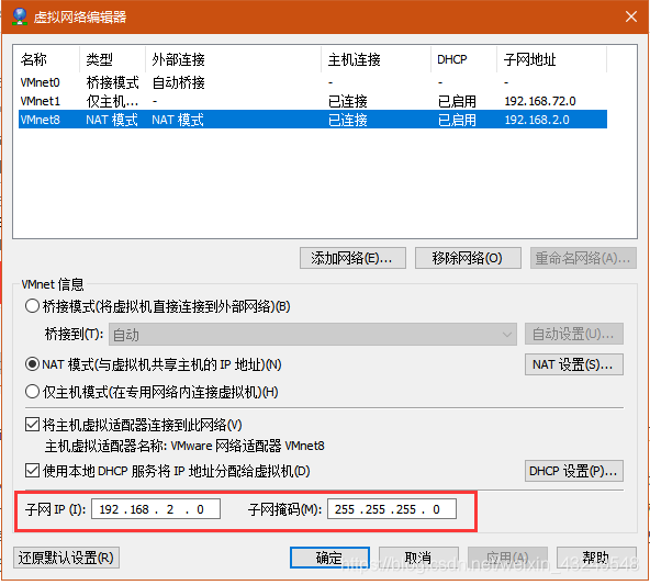 先假设一下,如果你的电脑上有或你的局域网中有8台计算机(或者虚拟机)。那么你需要8个ip地址来区分每一台计算机,所以你需要规划一个ip地址段来确定其地址。例如:192.168.2.10到192.168.2.17一共有8个地址。这样,每一台计算机就能得到一个ip地址了,其次,每一台计算机应该使用相同的网关和子网掩码,网关一般是以.1结束,例如192.168.2.1。子网掩码是255.255.255.0