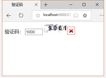 这里用了jq,在我的服务器端有一个文件夹imgs里面放了两个图片,分别是 x 和 ✔,当输入框失去焦点,会自动使用ajax方式请求后台并判断验证码是否正确,若正确就显示✔,否则显示 x。此外点击验证码可以刷新一张新的验证码。