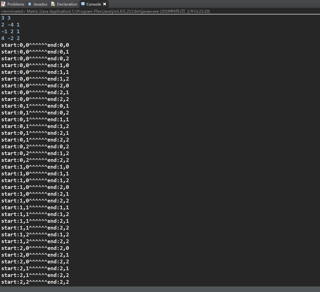 如果将注释的两个输出语句取消注释,将会得到所有情况子矩阵的信息,如下: