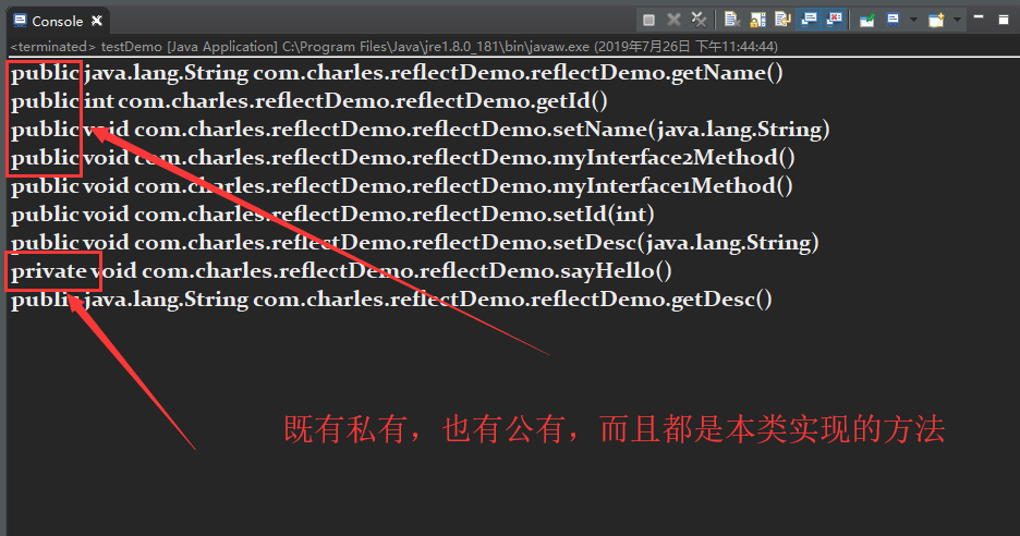 执行结果:拿到了所有的公共方法,包括父类和接口的