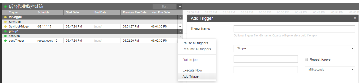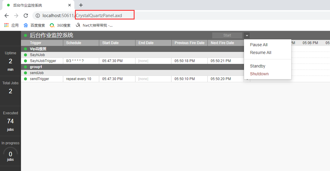 然后通过ScheduleManager.BuildScheduler()来创建IScheduler,就可以通过可视化界面来监控和管理我们的定时任务了。