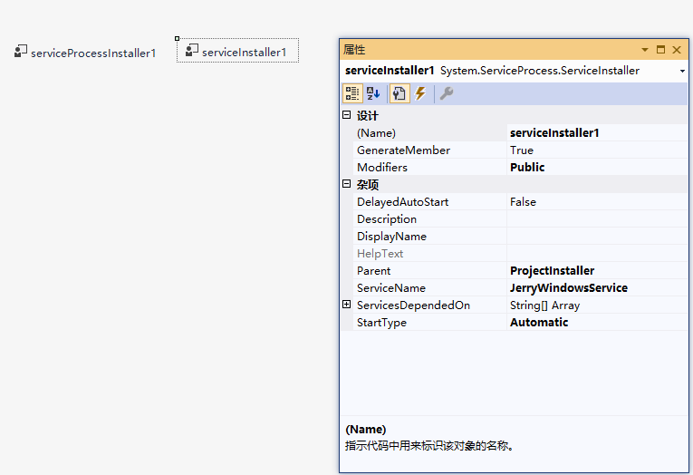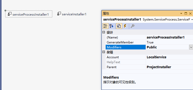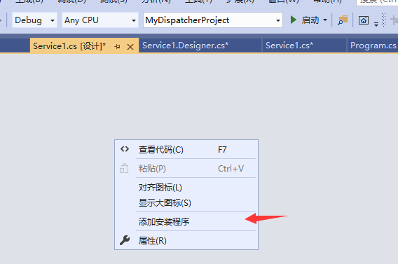 最后我们可以在Service1的界面上右键添加安装程序,来设置服务的一些信息。