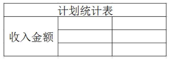 <body> <!--4行3列--> <table width="200px" align="center" cellspacing="0" border="1px"> <tr align="center" > <td colspan="3">计划统计表</td> </tr> <tr> <td rowspan="3">收入金额</td> <td>5</td> <td>6</td> </tr> <tr> <td>8</td> <td>9</td> </tr> <tr> <td>11</td> <td>12</td> </tr> </table> </body>