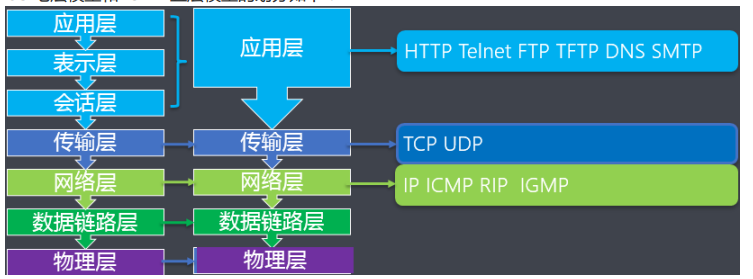 - OSI(Open System Interconnect),从上到下包括应用层-表示层-会话层-传输层-网络层-数据链路层-物理层