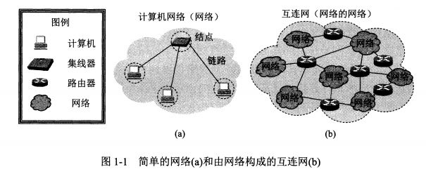 - 计算机网络是由若干个结点和连接这些结点的链路组成的,网络中的节点可以是计算机、路由器、集线器或交换机等。