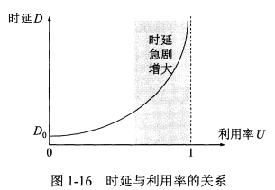 当信道或网络利用率过高时会产生非常大的时延,时延急剧增大