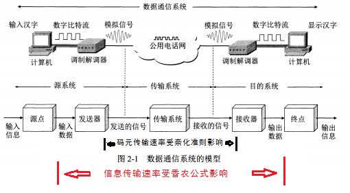 - 数据通信系统包括源系统(发送端)、传输系统(传输网络)和目的系统(接收端)。源系统包括源点和发送器,目的系统包括接收器和终点。
