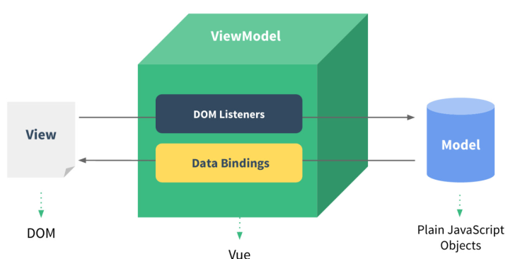 - 从View侧看,ViewModel中的DOM Listeners工具会帮我们监测页面上DOM元素的变化,如果有变化,则更改Model中的数据