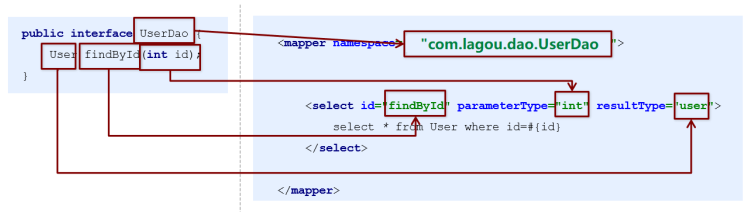 - Mapper.xml映射文件中的namespace与mapper接口的全限定名相同