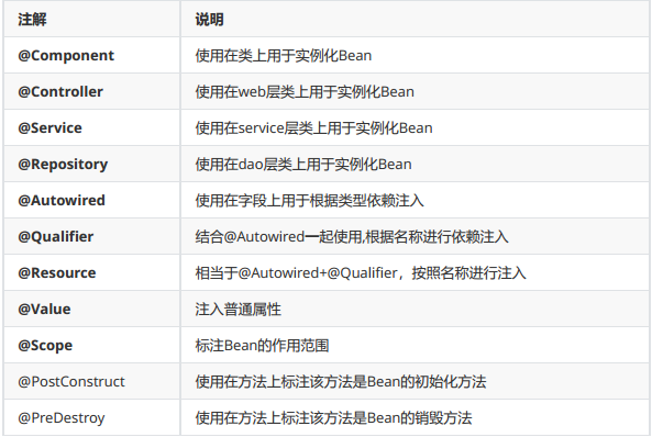 | @ComponentScan | 用于指定 Spring 在初始化容器时要扫描的包 |