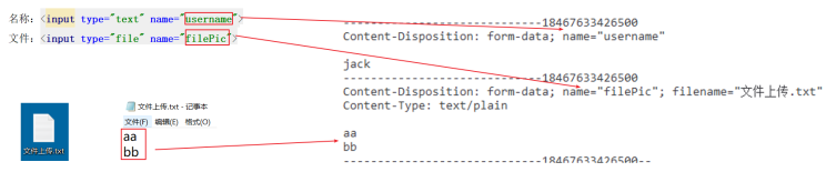 - 原理:当form表单修改为多部分表单multipart/form-data 时,request.getParameter()将失效,而表单属性为application/x-www-form-urlencoded,可以根据键值对的形式取值