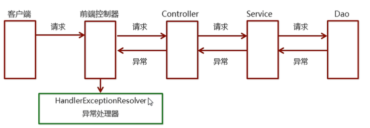 - springMVC的异常处理机制通过throws Exception向上抛出,由前端控制器交由异常处理器进行异常处理