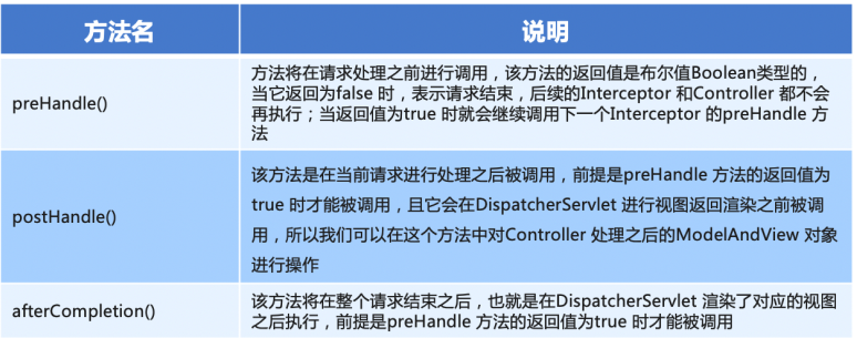 package interceptor; import org.springframework.web.servlet.HandlerInterceptor; import org.springframework.web.servlet.ModelAndView; import javax.servlet.http.HttpServletRequest; import javax.servlet.http.HttpServletResponse; public class MyHandlerInterceptor2 implements HandlerInterceptor { @Override public boolean preHandle(HttpServletRequest request, HttpServletResponse response, Object handler) throws Exception { System.out.println("在方法请求调用之前。。。。"); //return true 表示放行 // 若是false则后续的方法都会被拦截,无法执行 return true; } @Override public void postHandle(HttpServletRequest request, HttpServletResponse response, Object handler, ModelAndView modelAndView) throws Exception { System.out.println("调用方法后到视图之间"); } @Override public void afterCompletion(HttpServletRequest request, HttpServletResponse response, Object handler, Exception ex) throws Exception { System.out.println("视图之后"); } }