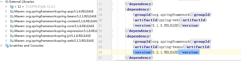 - 解决三:依赖锁定,直接锁定版本确定依赖的jar包,版本锁定后不考虑依赖的声明顺序或路径,以锁定版本为准(常用)