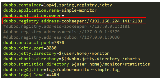 - 解压dubbo-monitor-simple-2.5.3.zip, 修改dubbo-monitor-simple-2.5.3\conf\dubbo.properties