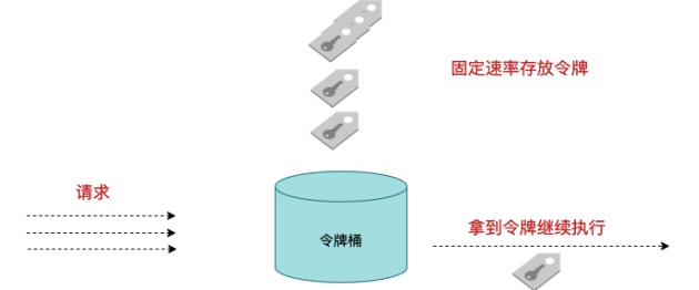 - 算法中存在一种机制,以一定的速率往桶中放令牌。每次请求调用需要先获取令牌,只有拿到令牌,才有机会继续执行,否则选择选择等待可用的令牌、或者直接拒绝。