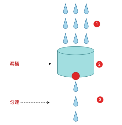 - 不管服务调用方多么不稳定,通过漏桶算法进行限流,每10毫秒处理一次请求。因为处理的速度是固定的,请求进来的速度是未知的,可能突然进来很多请求,没来得及处理的请求就先放在桶里