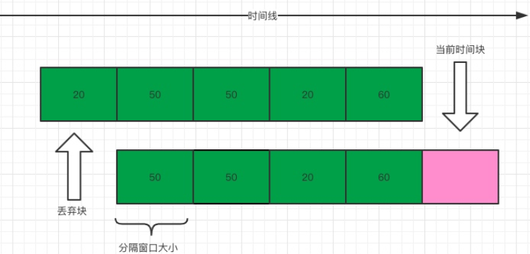 前窗口的值进行累加,进而得到当前请求数来判断是不是需要进行限流。