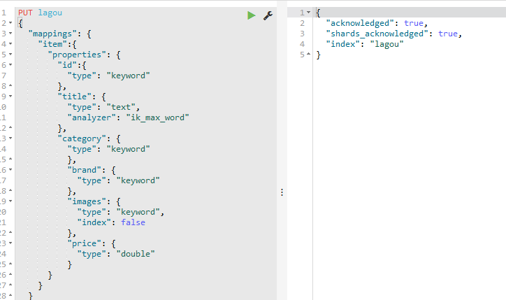 - images:图片,用来展示的字段,不搜索,index为false,不分词,可以使用keyword类型