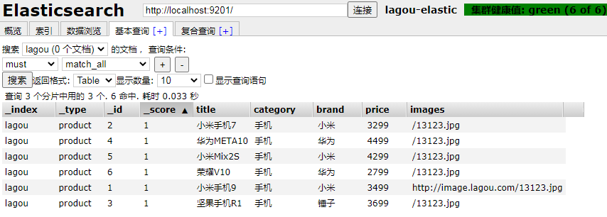 @Test public void testMatch()throws Exception{ // 查询构建工具 SearchSourceBuilder sourceBuilder = new SearchSourceBuilder(); // 添加查询条件,通过QueryBuilders获取各种查询 sourceBuilder.query(QueryBuilders.matchQuery("category","手机")); baseQuery(sourceBuilder); } private void baseQuery(SearchSourceBuilder sourceBuilder) throws IOException{ // 创建搜索对象 SearchRequest request = new SearchRequest(); request.source(sourceBuilder); // 搜索 SearchResponse response = restHighLevelClient.search(request, RequestOptions.DEFAULT); // 解析 SearchHits hits = response.getHits(); SearchHit[] searchHits = hits.getHits(); for (SearchHit hit : searchHits) { // 取出source数据 String json = hit.getSourceAsString(); // 反序列化 Product item = gson.fromJson(json, Product.class); System.out.println("item = " + item); } }