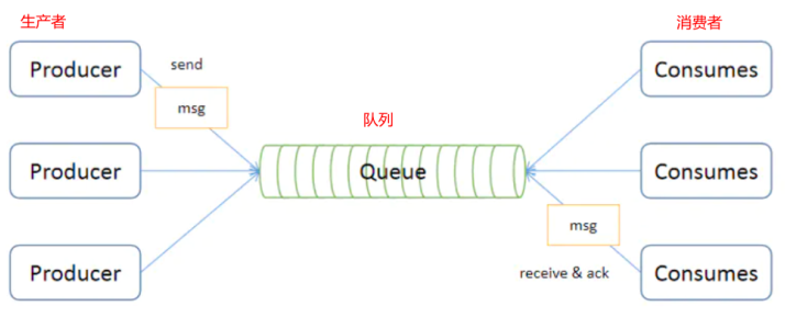 - 点对点模式下包括三个角色:消息队列、发送者 (生产者)、接收者(消费者)