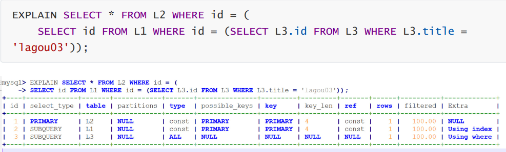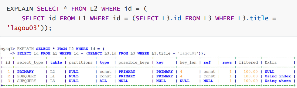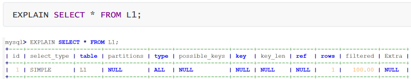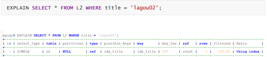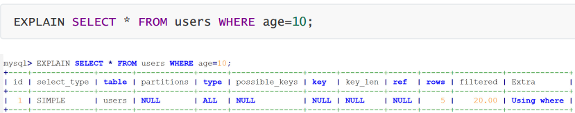 - 只返回需要的结果:一定要为查询语句指定 WHERE 条件,过滤掉不需要的数据行;避免使用 select * from , 因为它表示查询表中的所有字段