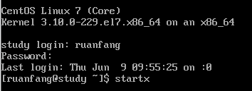 - 纯文本模式下启动X窗口,则图形界面窗口会出现在当时所在的tty[i]上,启动指令为startx。生效前提是