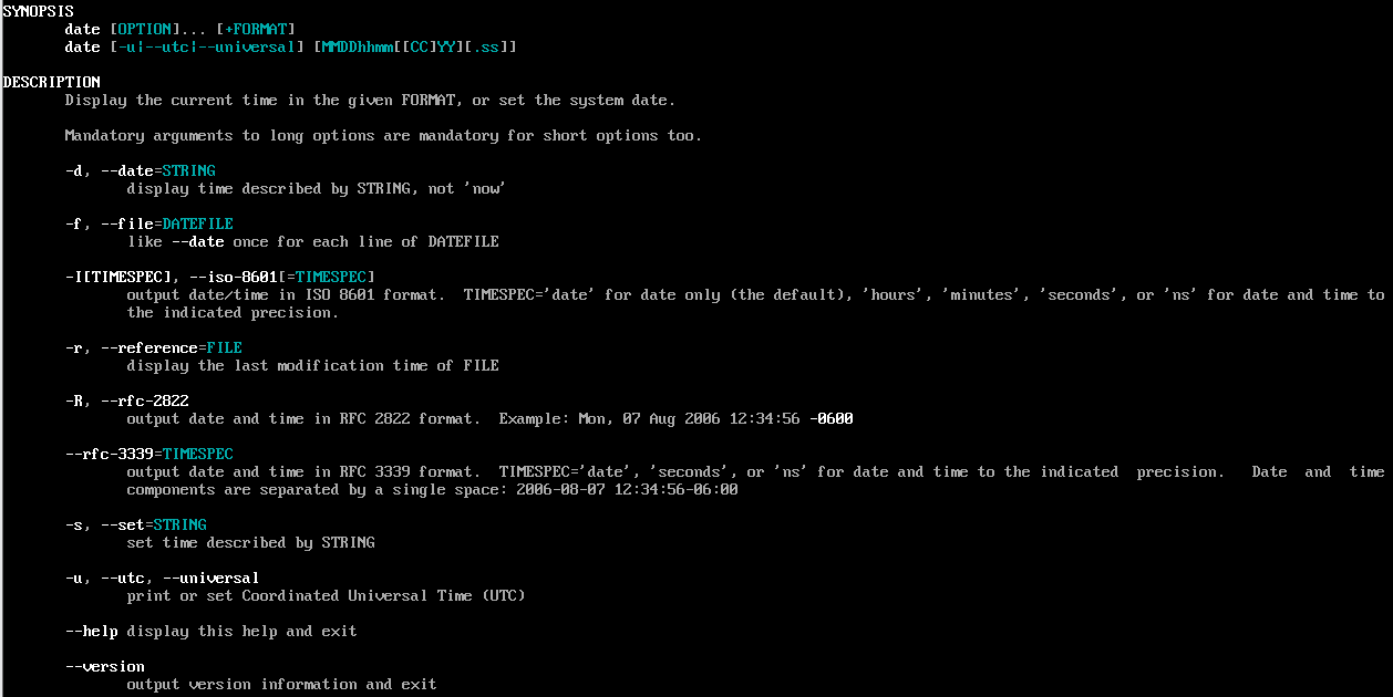 进入详细信息,可以查询指令的用法与相关参数说明,可以按空格键向下翻页,按q离开man 环境