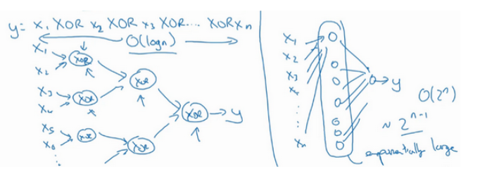 - 深层神经网络相对于又胖又浅的神经网络,可以减少神经元个数,减少计算量,