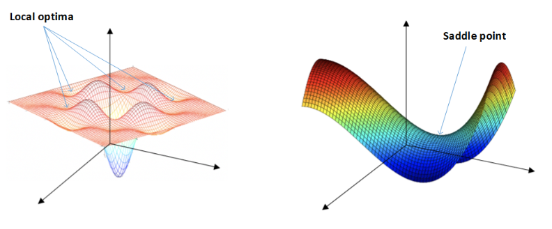 - 鞍点(saddle)是函数上的导数为零,但不是轴上局部极值的点。