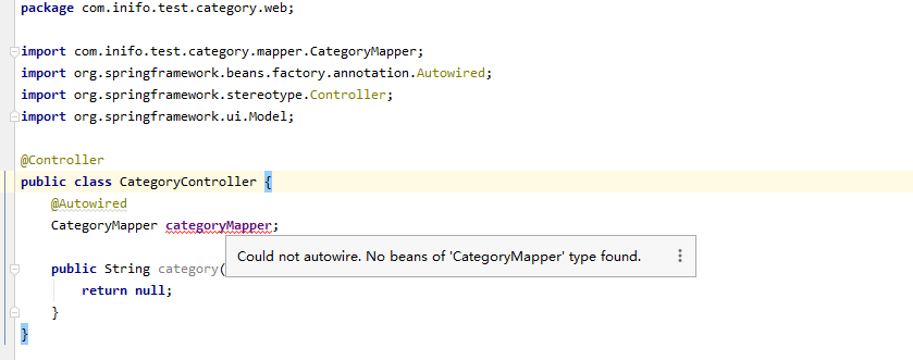 Idea报错Could not autowire. No beans of 'XXXXMapper' type found解决方法