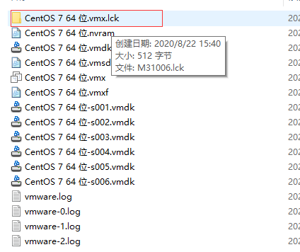 1、进入虚拟机目录删除所有以.lck结尾的文件。