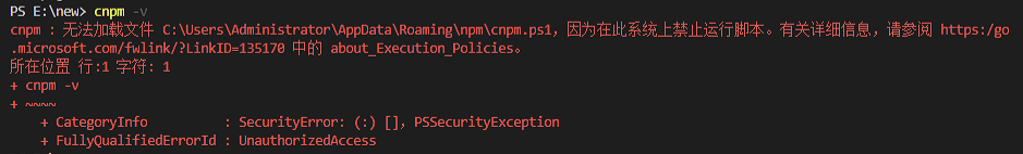 node.js使用cnpm时报错:无法加载文件 C:\Users\Administrator\AppData\Roaming\npm\cnpm.ps1,因为在此系统上禁止运行脚本