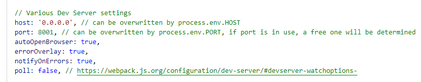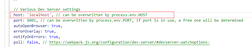 2、打开文件,找到host:'localhost',改为host:'0.0.0.0'