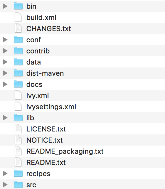 下载并解压ZooKeeper软件压缩包后,可以看到zk包含以下的文件和目录: